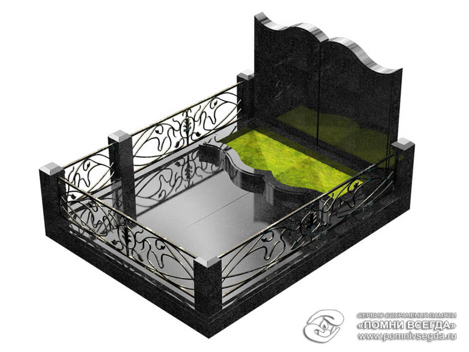 Четыре макета вариантов центральных плит памятников и цветников. Очень удобно, когда нужно выбрать один вариант и нет точной уверенности, что именно будет красиво смотреться. Визуализация выглядит очень натурально, с качественной отрисовкой, поверхности гранита отражают свет практически как в натуральных условиях. Это позволяет сделать правильный выбор до этапа изготовления.