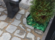 Покрасить ограду, так как чаще всего при установке ограды красят транспортировочной краской, которая приходит в негодность через год. Облицевать бетонный цоколь и бетон обрамляющий цветник. В данном случае для этого мы использовали керамогранит. Установили гранитные лавочку и столик. Посадили две туи и кустовые хризантемы в цветник. Заменили пластиковую вазу на гранитную. Уложили гранитную брусчатку на пол.