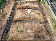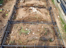 Сначала мы демонтируем всё, что находится на участке. Исключение составляет лишь бетонный цоколь, который нам не помешает. Приступаем к вкручиванию свай.