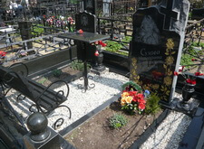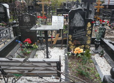 Состояние могилы после небольшого цикла работ. Покрашена лавка и ограда, обновлены розочки на ограде, помыты памятники и гранитный цоколь, убраны цветники и сорняки, почищена мраморная крошка. На могилу возложили свежие цветы.
