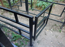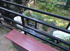 Последовательность работы стандартная. Во-первых, сжечь старую краску, во-вторых, зачистить ограду до металла, после покрыть грунтом чистый металл и покрасить черной краской. После покраски убраться на могиле. Далее на фото обожженная краска на ограде.