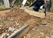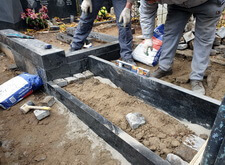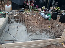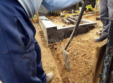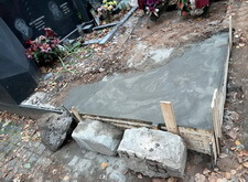 В первую очередь мы начали с подготовки надёжного основания для будущего памятника. Для этого мы раскопали необходимую часть места захоронения.