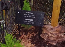 Могила стандартная, не большая. Когда-то здесь стоял гранитный памятник и была высокая ограда. После очередного захоронения плиту убрали в сторону, цветник тоже подняли, переднюю часть ограду демонтировали, установили временный крест.