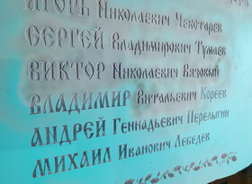 К нам с нестандартным заказом обратился настоятель одного из храмов – им требовалось изготовить новые таблички памяти погибшим военнослужащим. Приехав на место, мы первым делом принялись за осмотр фронта работ. На фотографии ниже видна церковь, в которой нам и надлежало заменить памятные надписи.