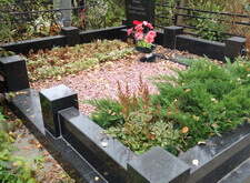 Гранит помыли, цветы в цветнике убрали, закрыли землю корой, могилу почистили от опавшей листвы. Могила снова в полном порядке.